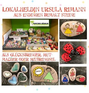 Ab sofort gibts toll bemalte Steine von unserer Lokalheldin Ursula Rimann aus Endingen, bei uns. Die kleinen Kunstwerke eignen sich super als Schutzengel, Glücksbringer für Prüfungen, Päcklibegleiter, als Dankeschön oder kleine Liebeserklärung.